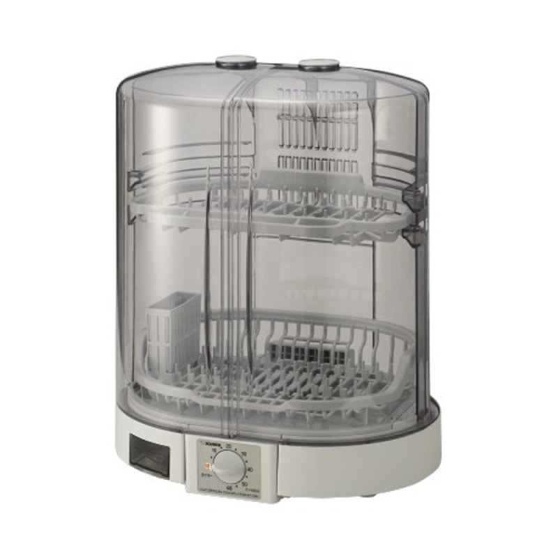置き場所に困らない、象印独自のたて型タイプ。置き場所に困らない「省スペース・たて型」扉はスライド式なので扉前の空間も有効利用できます。標準食器5人分入ります。
