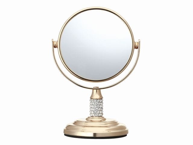 小泉 丸型ミニ拡大鏡(両面卓上)5倍/7.5cmラインストーン KBE-3052-N ゴールド