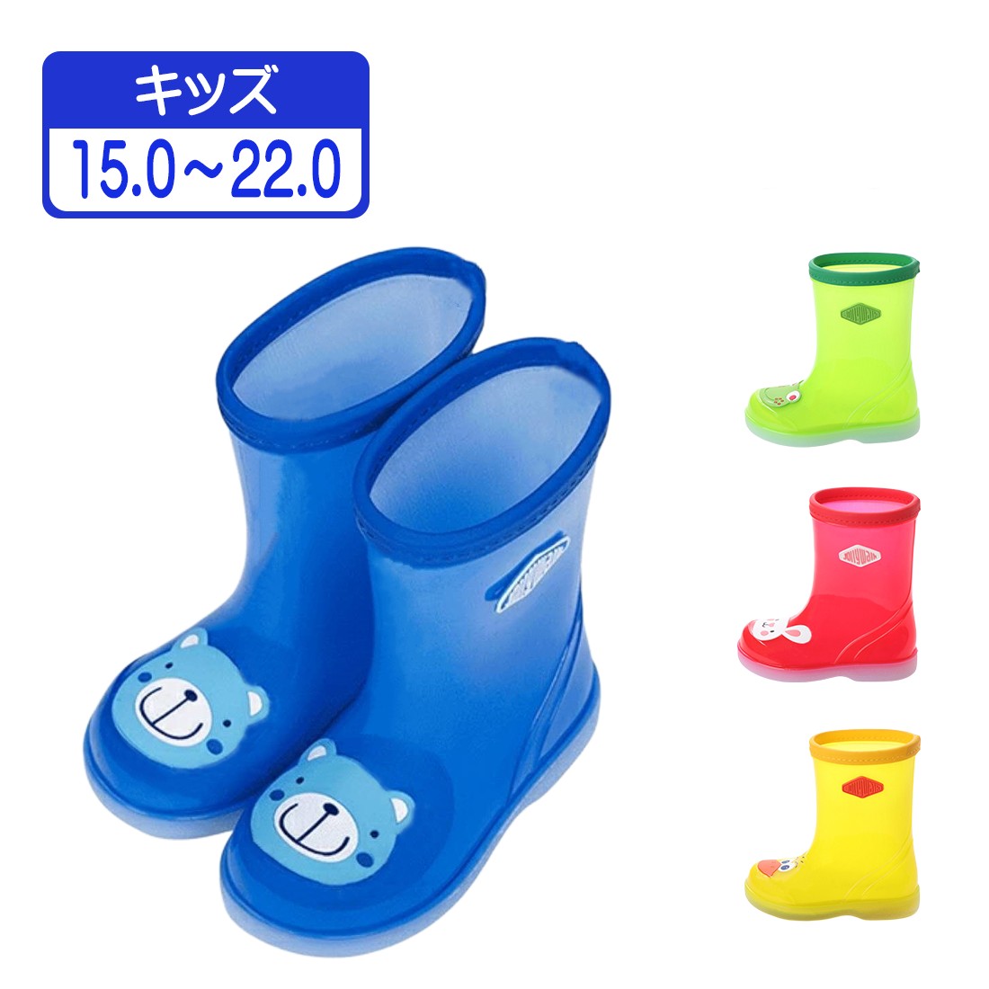キッズ レインブーツ レインシューズ パステルカラー キャラクター パイピング かわいい柄 防滑底 子供 男の子 女の子 男女兼用 15cm 〜 22cm JWQ06