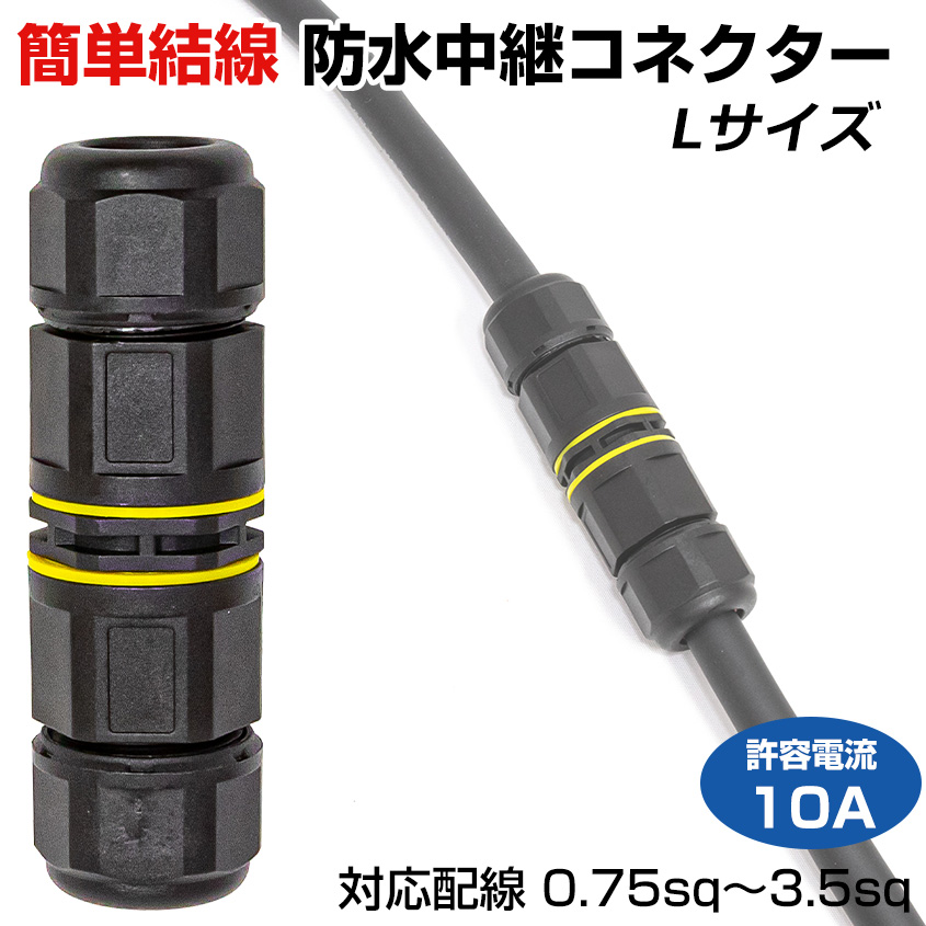 作業灯 配線 延長 防水 中継コネクター Lサイズ 適合ケーブル外径 Φ6.5mm-12.5mm 2芯 丸形コード 集魚灯 電源コード 屋外用コネクター