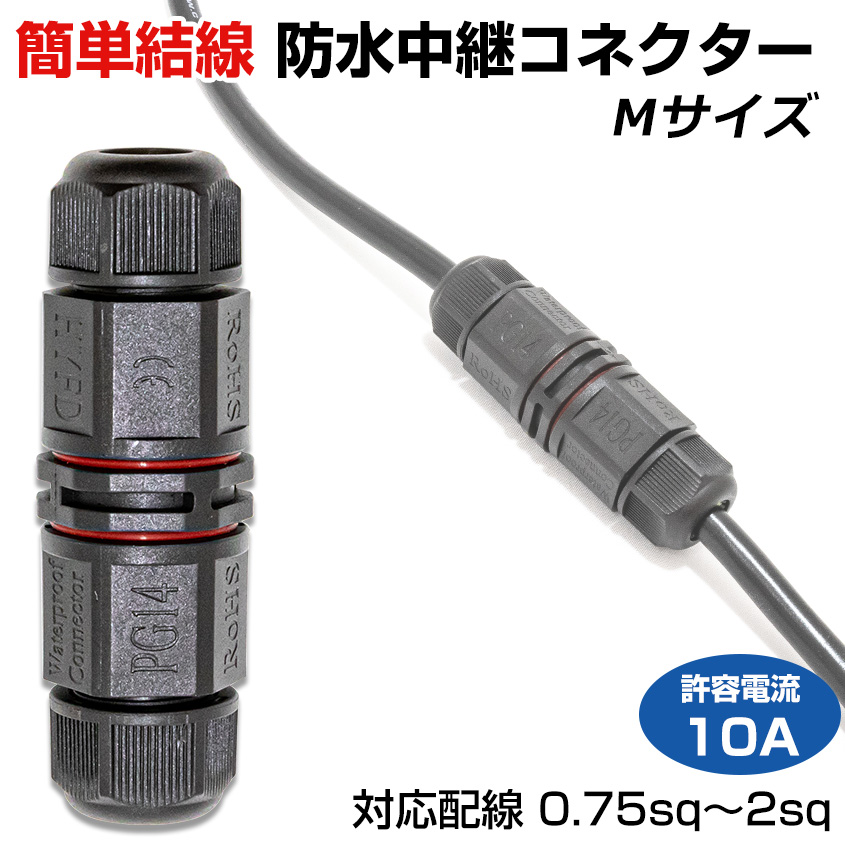 配線コネクター 防水 Mサイズ ワンタッチ 2極 集魚灯 作業灯 コード 延長 中継コネクター 外径 Φ5.5mm-8.5mm 2芯 丸形コード VTC 屋外用 【楽天倉庫より出荷】