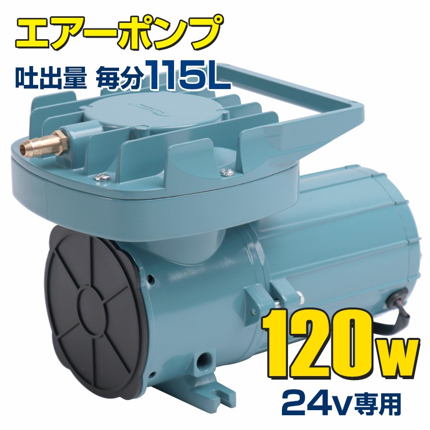 船 いけす エアーポンプ イケス 本体のみ 120w 24v 115L/毎分 生け簀 酸欠防止 漁船 ボート 車 水槽 ぶくぶく 空気 活魚 運搬 生き餌 イカ