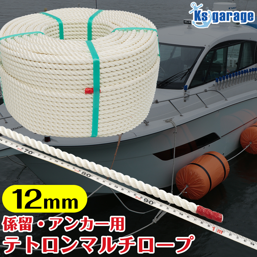 係留ロープ 12mm 【1m単位 計り売り】 クレモナロープ より強度のある 日本製 ポリエステル マルチフィラメント ロープ 高強度 高品質 アンカーロープ 三つ打ち