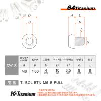 64チタン製ボタンボルト M6×8 全ネジ ピッチ:1.0 スレッド長:FULL(全ネジ) のチタンボルトです。