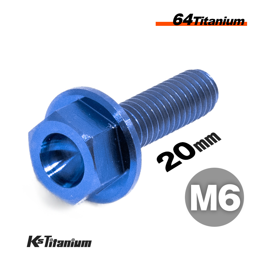 チタンボルト M6×20 P1.0 ブルー 1本売り 64チタン フランジボルト FULLスレッド 全ネジ チタン合金 バイク パーツ 自転車 ボルト 軽量化