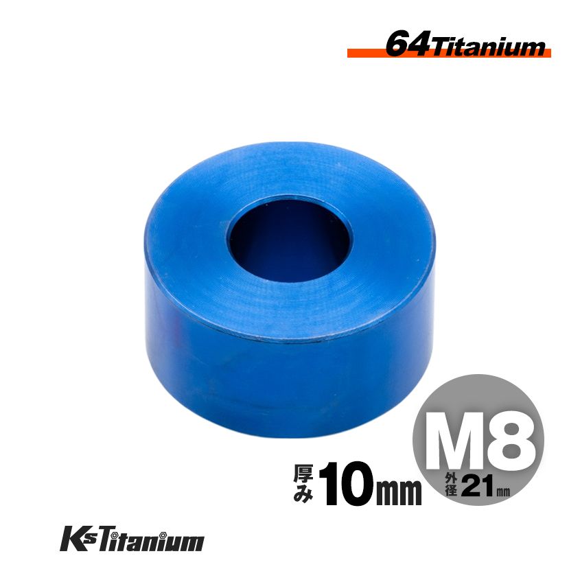 チタン製 カラー スペーサー M8×21 10mm厚 ブルー 1個売り チタン ワッシャー レストア カスタム ドレスアップ 隙間調整