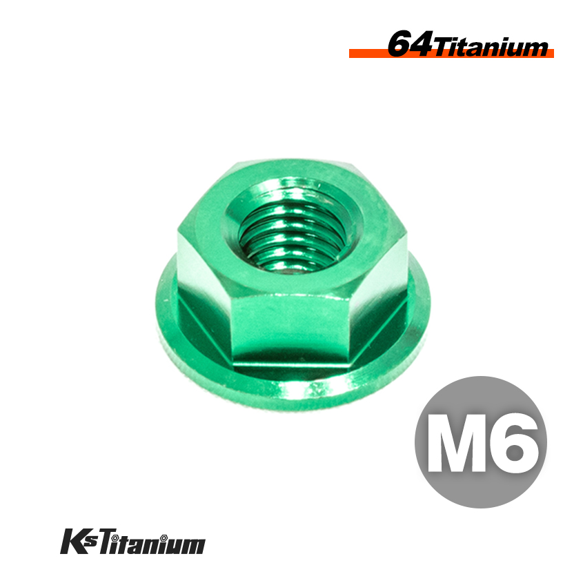 チタンナット M6 P1.0 グリーン 1個売り 64チタン フランジナット バイク レストア パーツ