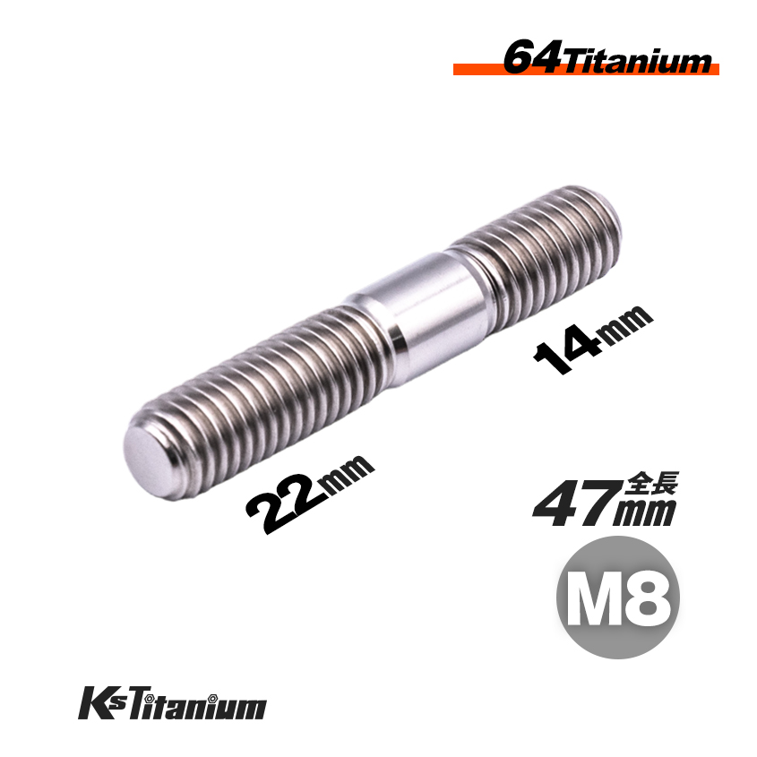 64チタン製 スタッドボルト M8×47 ピッチ:1.25 スレッド長:37mm のチタン製スタッドボルトです。