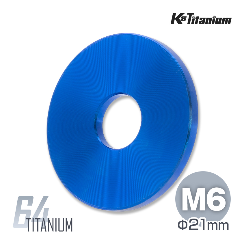 チタンワッシャー M6 21.5mm t1.7 ブルー 64チタン ワッシャー 幅広 ワイドタイプ ラジエター カウル類取付けに カラー スペーサー