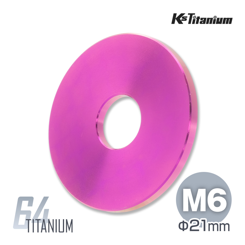 チタンワッシャー M6 21.5mm t1.7 パープル 64チタン ワッシャー 幅広 ワイドタイプ ラジエター カウル類取付けに カラー スペーサー