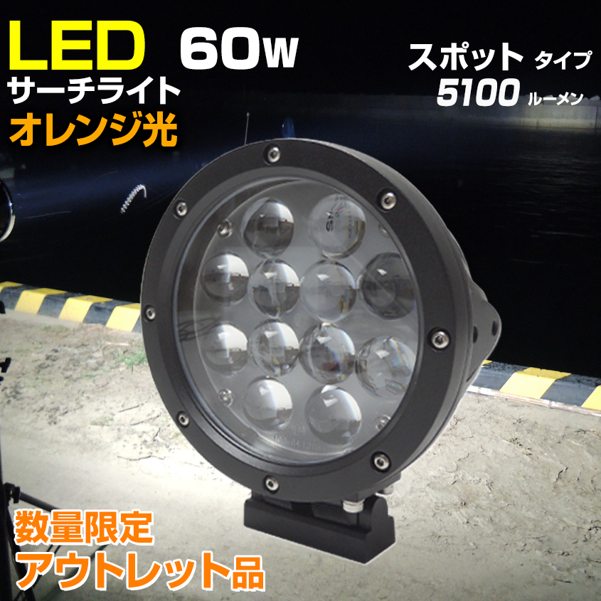 アウトレット品 船 サーチライト LED 60w オレンジ 24v 12v 兼用 スポットタイプ 防水 ボートの前照灯 600m照射