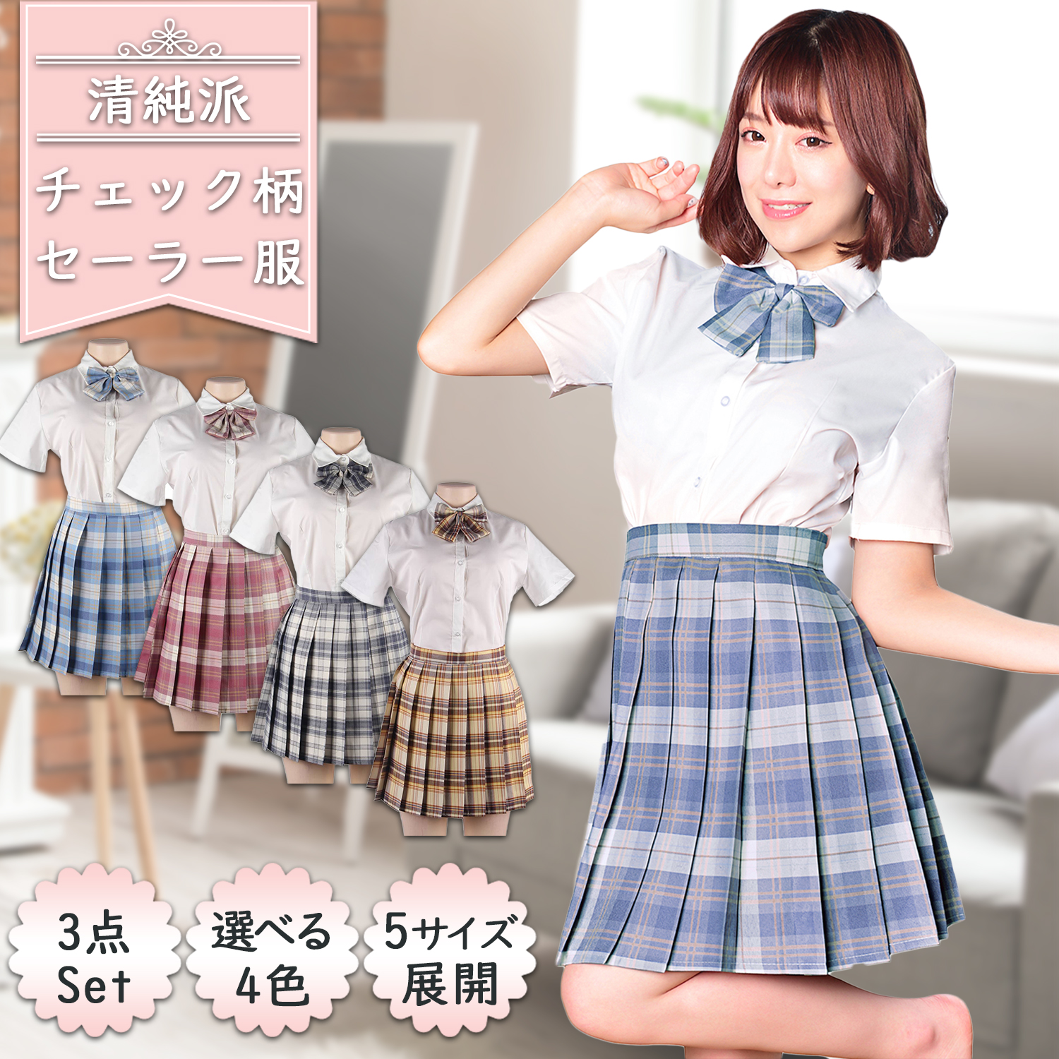セーラー服 コスプレ 制服 JK 女子高生風 シンプル 清純系 コスチューム 上下セット 可愛い ミニスカート アジャスター付き S〜XL レディース ハロウィン 仮装