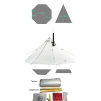 付属品:フライシート1個、ペグ15本、ロープ7本、収納バッグ1個、アクセサリーバッグ1個、アルミポール1個