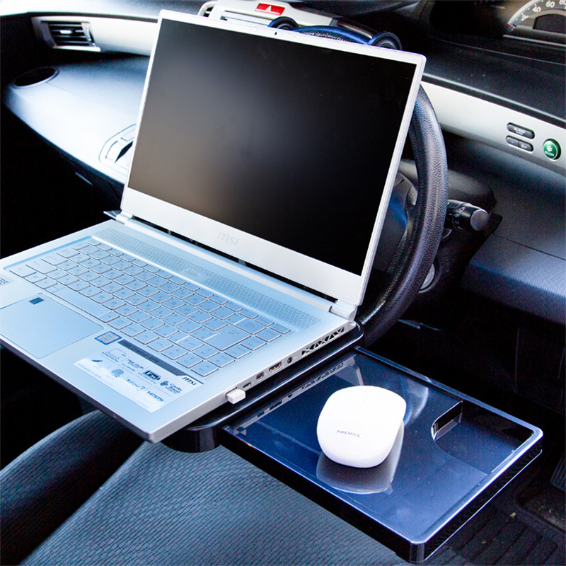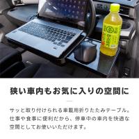 サッと取り付けられる車載用折りたたみテーブル。 仕事や食事の時に便利だから、停車中の車内を快適な空間としてお使いいただけます。
