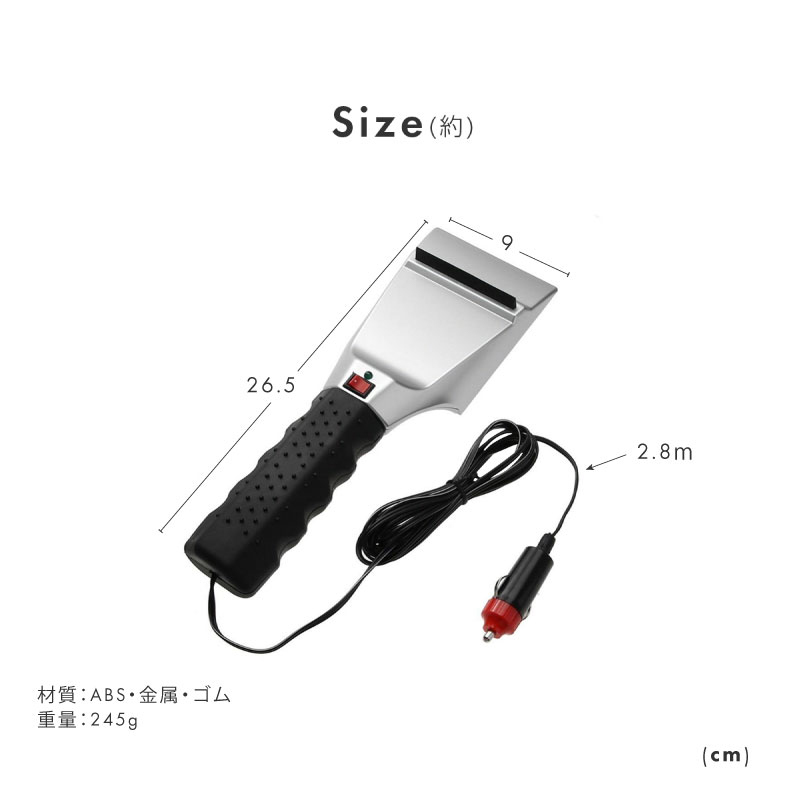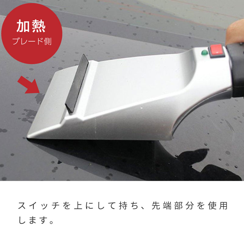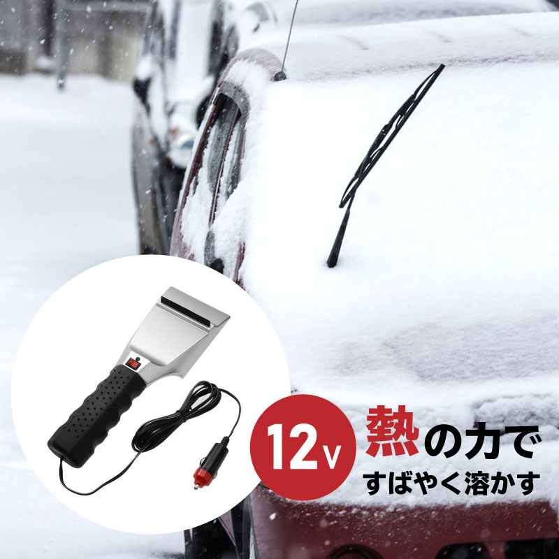 アイススクレーパー スクレーパー 車 ガラス ヒーター 加熱式 フロントガラス スノースクレーパー ヒートスクレーパー 霜取り ヘラ 雪かき 氷 霜 除氷 冬 窓ガラス 凍結 除雪 ワイパー 12V シガーソケット 車のフロントガラスなどに積もった雪や氷を、熱の力を使って素早く取り除きます。