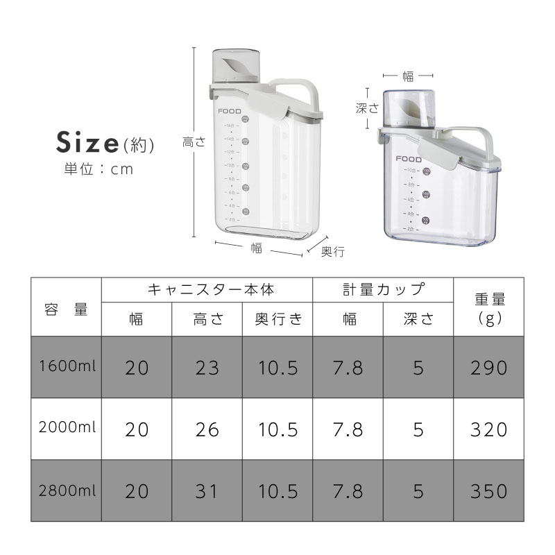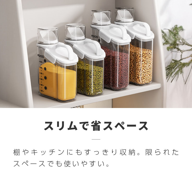 キャニスター フードストッカー 密閉 保存容器 2L 防湿 乾燥 米びつ ペットフードストッカー 大容量 計量カップ付き