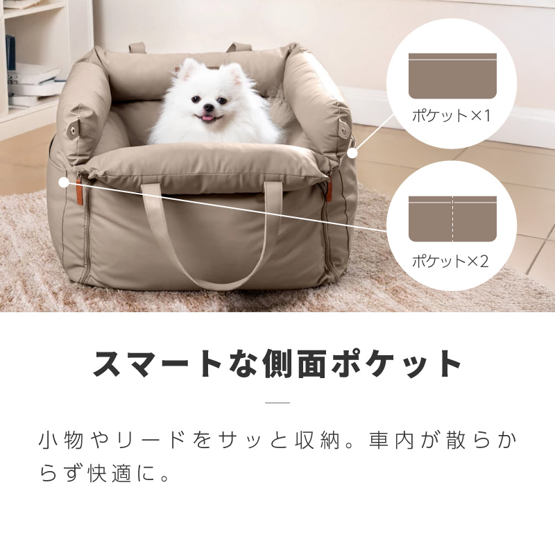 ドライブベッド ドライブボックス 犬用 ペットキャリー 小型犬 中型犬 車用 固定 助手席 後部座席用 ソフト ショルダーストラップ クッション 高級感あるPU素材のドライブベッド。 Mサイズは小型犬・中型犬におすすめ。防水・耐傷性に優れ、毛が付きにくく快適。 中綿はファスナー式で取り外し可能、丸洗いOK。 PUレザーは水拭き・乾拭きで簡単お手入れ。高反発クッションでペットもリラックス。 深め設計で安定感があり、車用としても安心。前面は2段階開閉で顔出しや出入りもスムーズ。 側面ポケット付きでリードや小物もすっきり収納。助手席・後部座席に固定できるソフトタイプ。 ショルダーストラップ付きで持ち運びも快適。大きいサイズ感でゆったり過ごせる設計。 ペットキャリーとしても使える多機能仕様。ドライブボックスとしても活躍し、 快適な移動時間をサポートします。