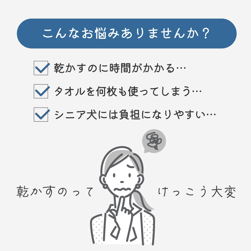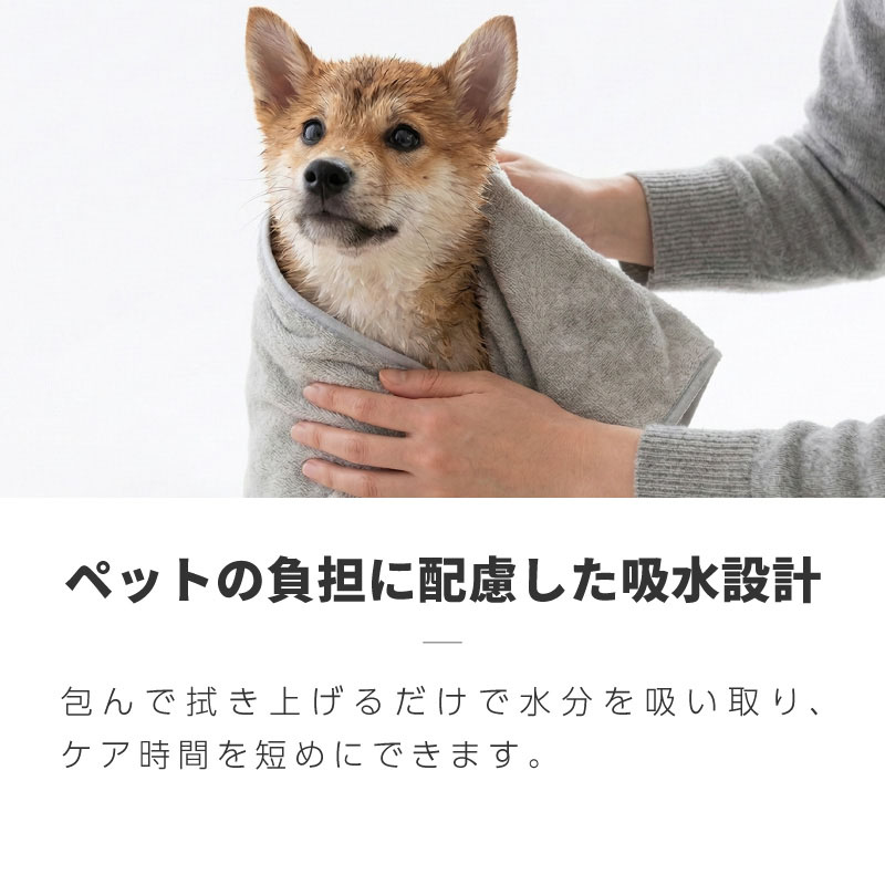 負担を抑え素早く水分を除き、シニア犬や子犬のケアにも取り入れやすい設計です。
