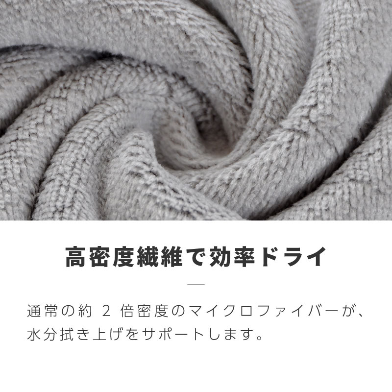 通常の約2倍密度の繊維が水分を素早く吸い上げ、ドライ前の時短ケアをサポートします。