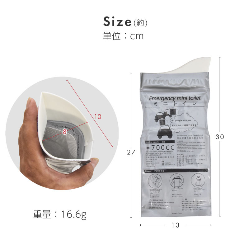 携帯用トイレ 車 子供 子ども 女性 男性 防災 袋 凝固剤 小便 災害用 登山 非常用 渋滞 個包装 使い捨て 700cc アウトドア 運転 ---------------------- コンパクト 薄型 軽量 男女兼用 5個現役防災士による監修で、非常時に頼れる安心構造を実現。