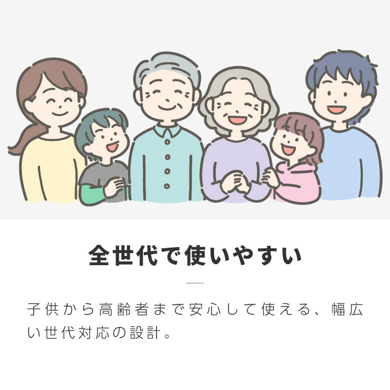 男女兼用で子供から高齢者まで幅広い世代に対応できます。