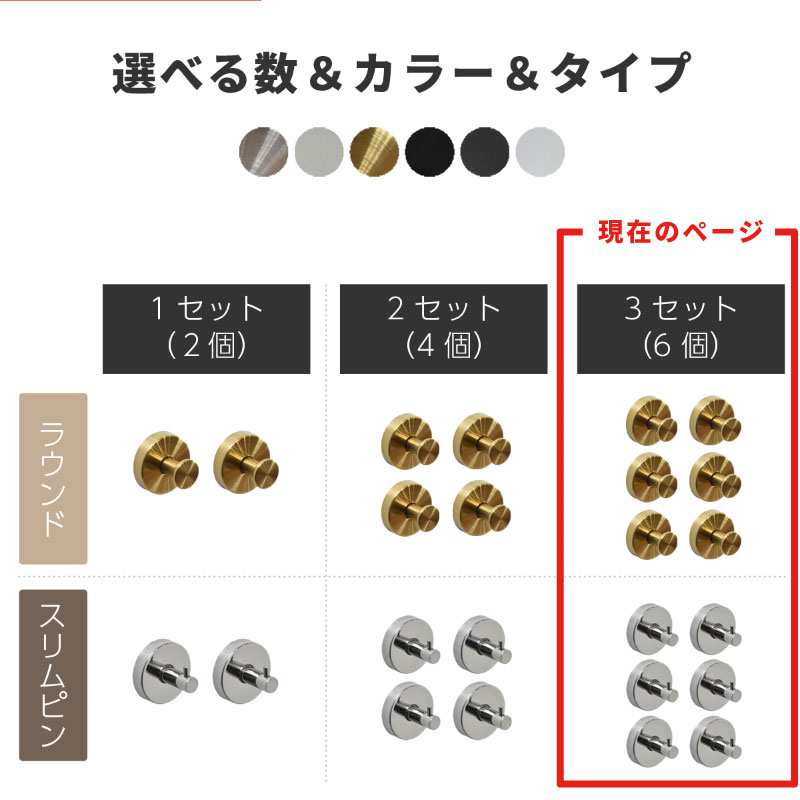 おしゃれな6色展開と2個セットで家中の壁掛けに活躍します。