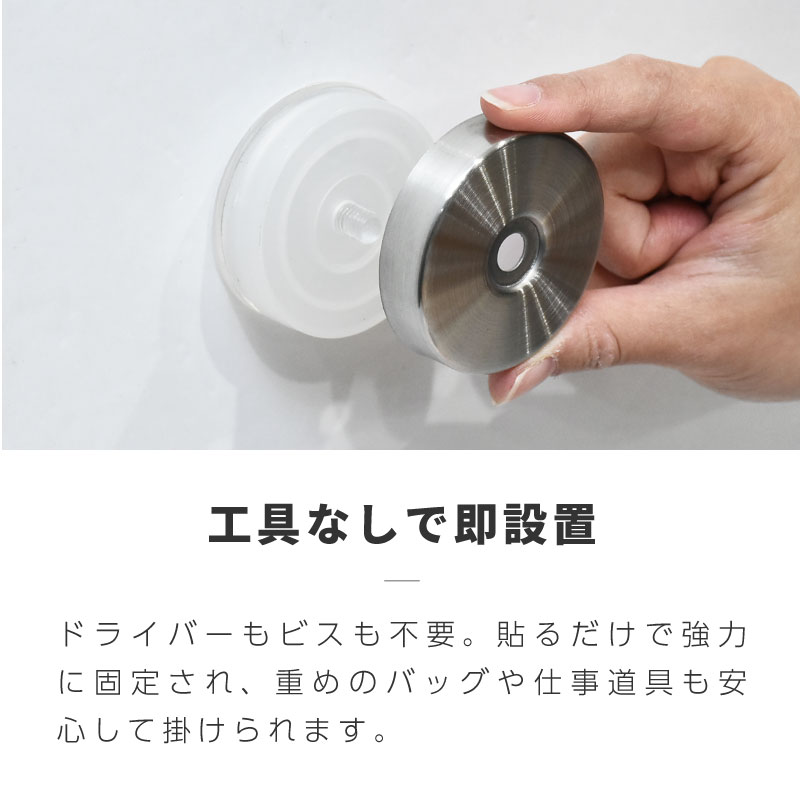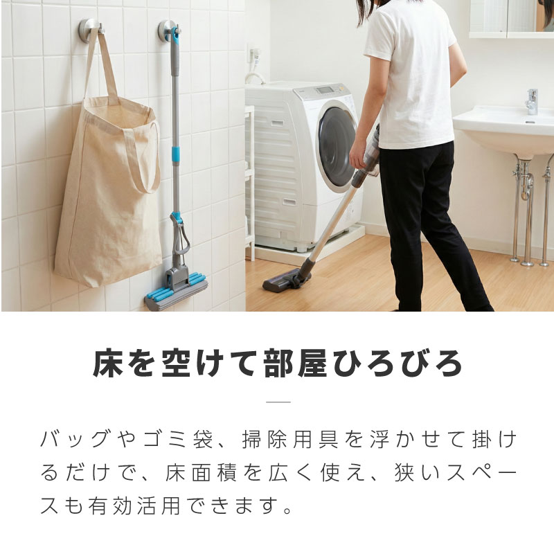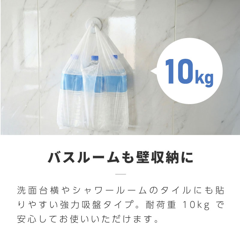 耐荷重10kgでバッグやバスグッズも安定して掛けられ、