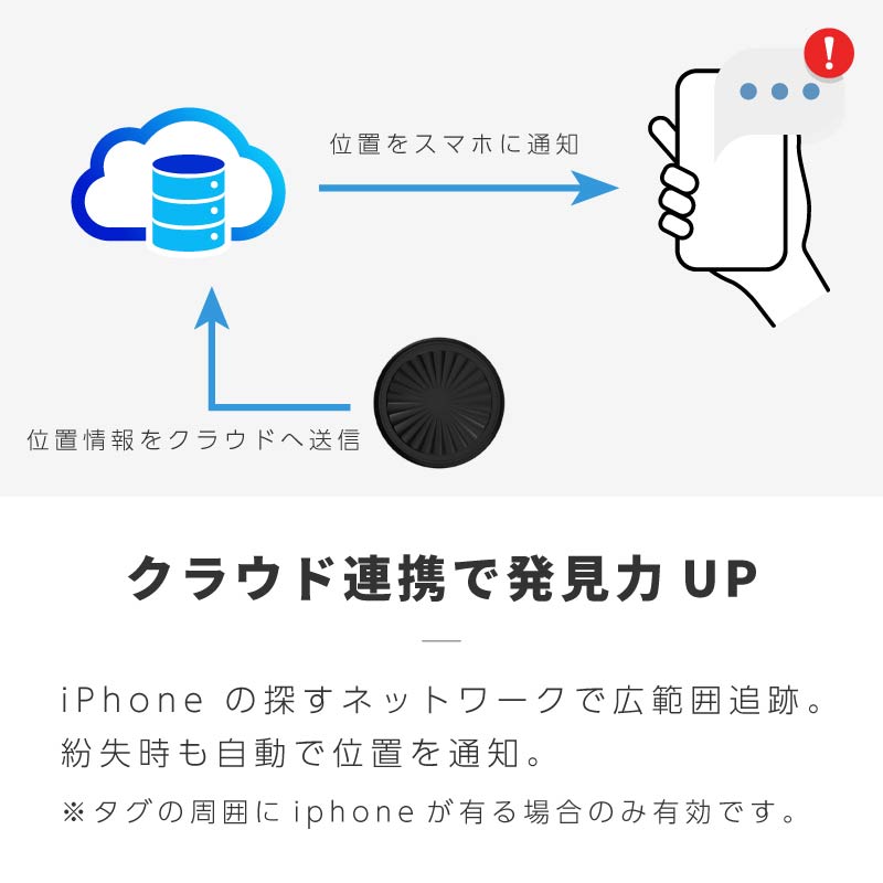 iPhoneの探すネットワークで広範囲追跡。紛失時も自動で位置を通知。