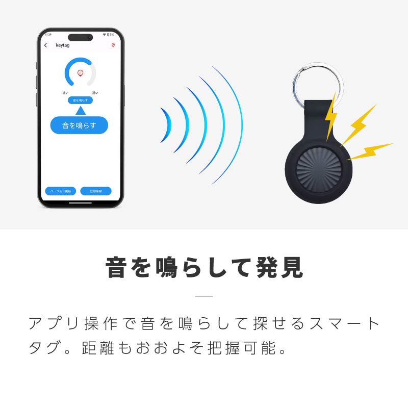 アプリ操作で音を鳴らして探せるスマートタグ。距離もおおよそ把握可能。