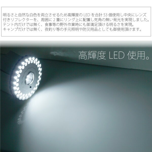高輝度LEDを53個搭載し実用的な明るさとはっきりとした色味の白色光を実現。