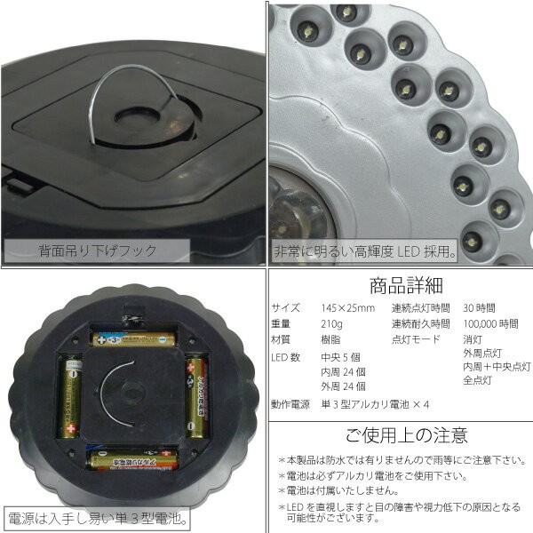 キャンプ等アウトドアや夜釣り、車両整備等に便利な円盤型LEDライト