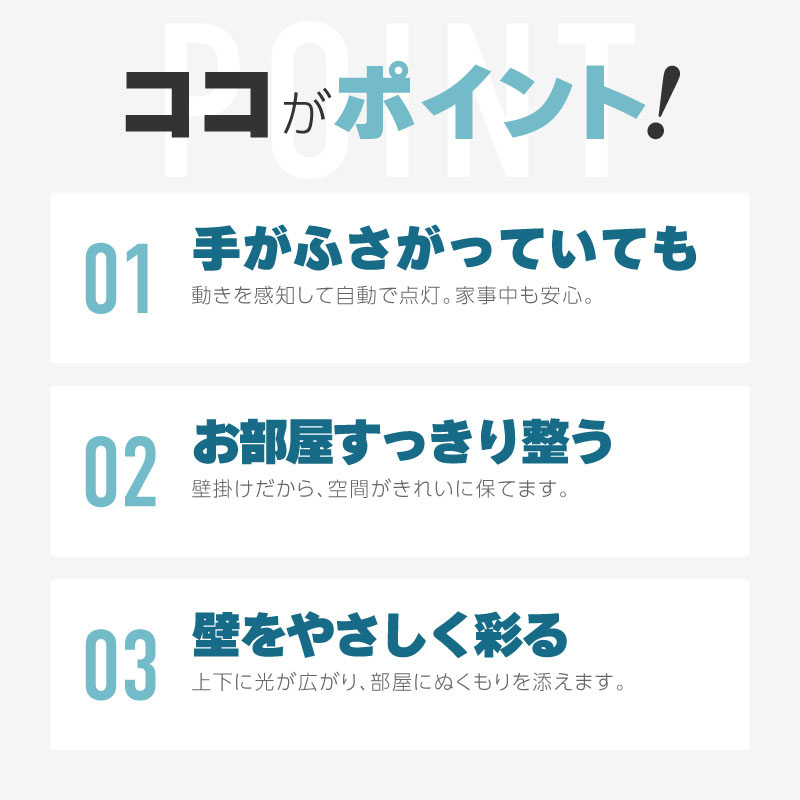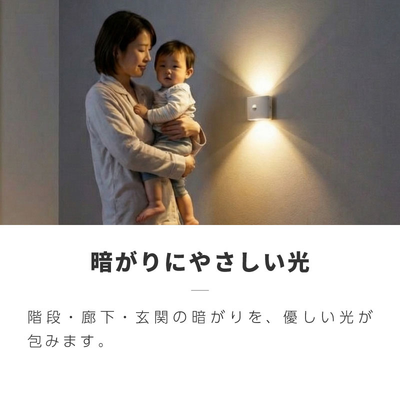 荷物を持っていても近づくだけで点灯し、玄関や廊下、階段などの室内をやさしく照らします。
