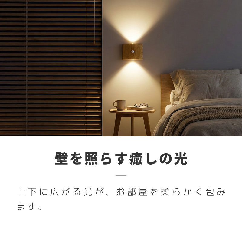 ウォールライト 人感センサーライト LED 室内 屋内 充電式 USB 工事不要 コードレス おしゃれ 木目 壁掛けライト 爆買