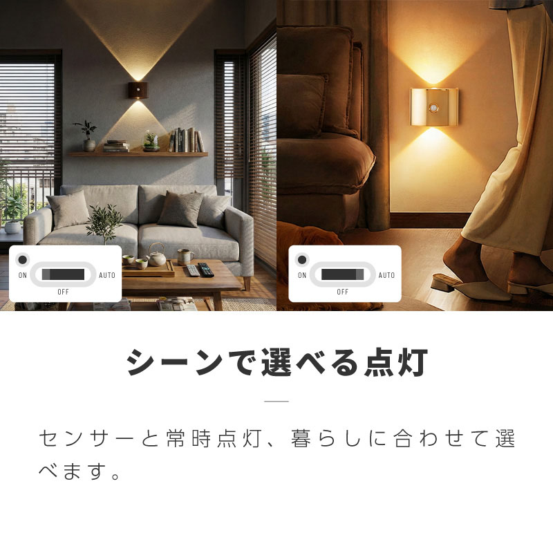 センサーライト 照明 LED 小型 人感センサーライト 自動点灯 明暗センサー 人感センサー USB 充電 マグネット 配線不要 おしゃれ 室内 玄関 廊下 トイレ 階段 常夜灯 木目-----黒 白 ゴールド シルバー 昼白色 電球色 温白色人感センサーで自動点灯。