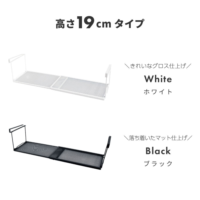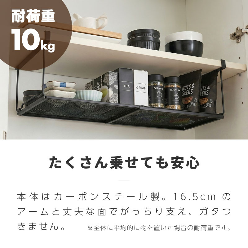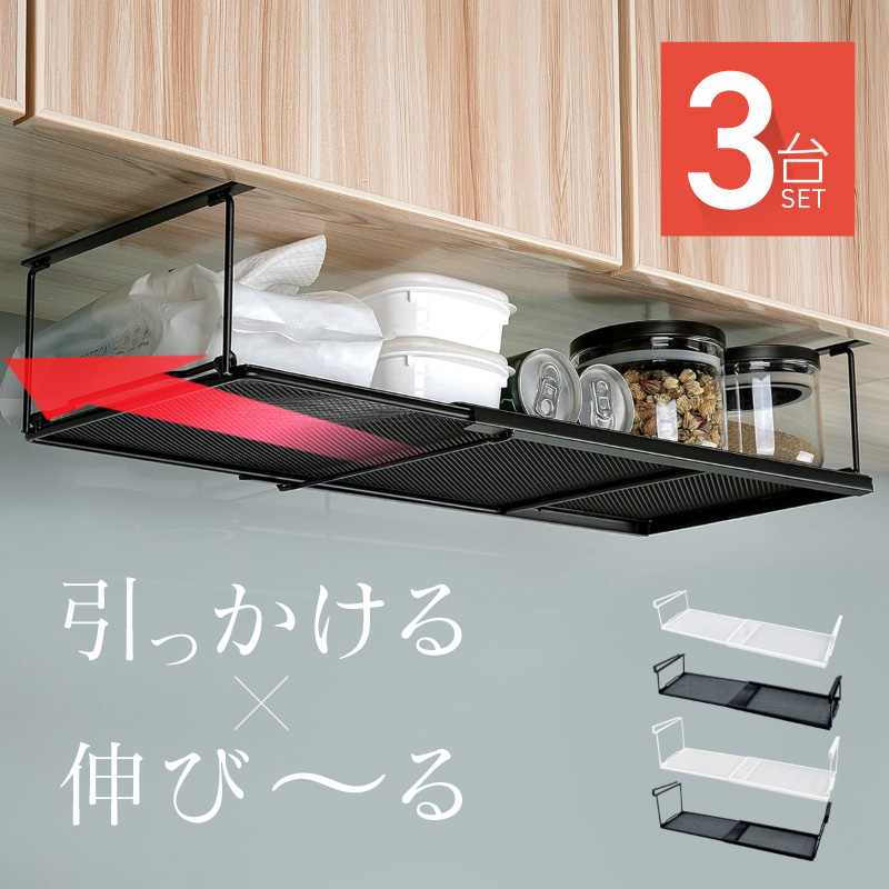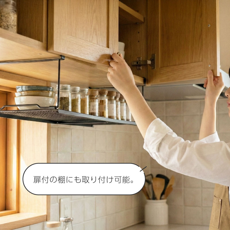 吊り戸棚収納 吊り戸棚収納ラック 吊り戸棚下ラック 伸縮 ワイド スリム 省スペース 戸棚下収納 戸棚下収納ラック 吊り戸棚 吊り下げ棚 キッチン収納 おしゃれ ホワイト ブラック 白 黒 賃貸でも設置可能な吊り下げ式収納ラックは、吊戸棚や棚板の下などのデッドスペースを有効活用できるアイテムです。