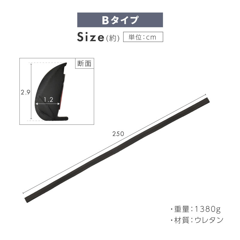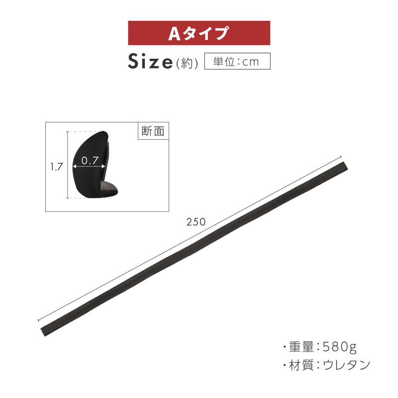 ■ サイズ(約)Aタイプ : 全長250cm×厚さ0.7cm×高さ1.7cmBタイプ : 全長250cm×厚さ1.2cm×高さ2.9cm