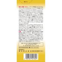 成分・分量 | 2錠中 (成分・分量) トチュウ乾燥エキス(トチュウとして200mg):14.0mg シャクヤク乾燥エキス(シャクヤクとして120mg):17.1mg エゾウコギ乾燥エキス(エゾウコギとして350mg):14.0mg オウギ乾燥エキス(オウギとして240mg):30.0mg オキソアミヂン末:50.0mg L-アルギニン塩酸塩:50.0mg チアミン硝化物(V.B1):10.0mg リボフラビン(V.B2):4.0mg ピリドキシン塩酸塩(V.B6):10.0mg トコフェロールコハク酸エステルカルシウム(dl-α-トコフェロールコハク酸エステル(V.E)として20mg):20.7mg L-アスコルビン酸ナトリウム(L-アスコルビン酸(V.C)として100mg):112.6mg 無水カフェイン:50.0mg (添加物)セルロース、ヒドロキシプロピルセルロース、クロスポビドン、ステアリン酸Mg、ヒプロメロース、タルク、アラビアゴム、炭酸Ca、白糖、ゼラチン、ポリオキシエチレンポリオキシプロピレングリコール、リン酸水素Na、酸化チタン、黄色五号、カルナウバロウ |