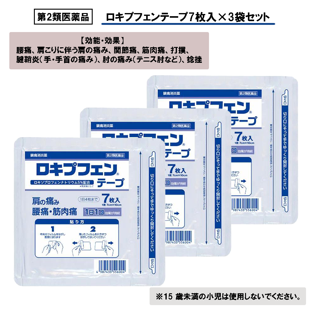 | 成分・分量 | (膏体100g 中)1枚7cm×10cm、膏体量1g ロキソプロフェンナトリウム水和物・・・5.67g(無水物として5g) 添加物: l-メントール、ミリスチン酸イソプロピル、BHT、タルク、スチレン・イソプレン・スチレンブロックコポリマー、テルペン樹脂、流動パラフィン、その他2成分 |