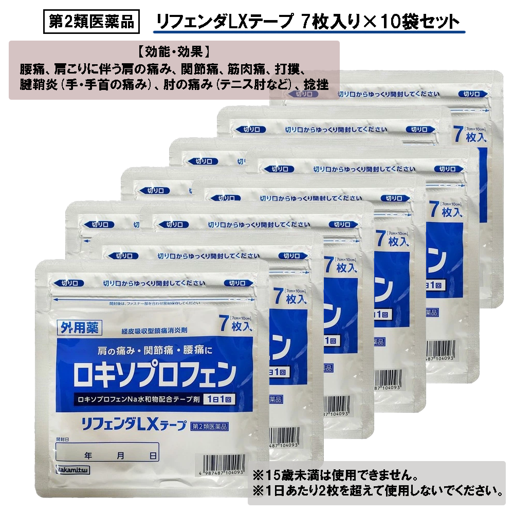 | 商品説明 | ●肩の痛み・関節痛・腰痛に ●ロキソプロフェンナトリウム水和物配合テープ剤 ●15歳未満は使用できません。 ●1日あたり4枚を超えて使用しないでください。 |