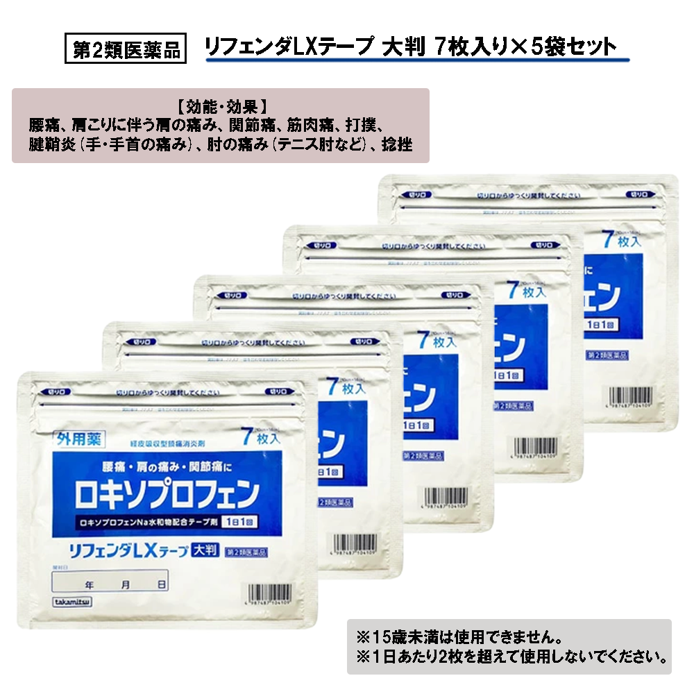 | 商品説明 | ●肩の痛み・関節痛・腰痛に ●ロキソプロフェンナトリウム水和物配合テープ剤 ●15歳未満は使用できません。 ●1日あたり2枚を超えて使用しないでください。 |