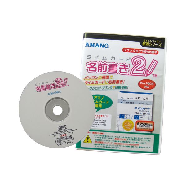 【商品名】 アマノ タイムカード 名前書きソフト2 【ジャンル・特徴】 面倒だった手書き作業をPCでラクラク印字。 [ タイムカ-ドナマエカキソフト2 ]