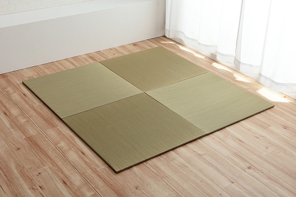フローリングに置くだけ。なつかしい畳の香りと肌ざわりを手軽に楽しめます。い草には空気の自然浄化作用、湿度の調節作用などがあります。また汚れにくく、使用するうちに黄金色に変化し味が出ます。中材は木製ボードタイプ+ポリエチレンで程よいクッション性と重量感があります。