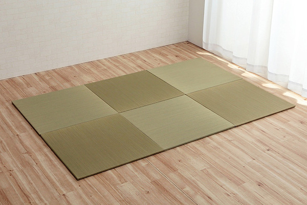 フローリングに置くだけ。なつかしい畳の香りと肌ざわりを手軽に楽しめます。い草には空気の自然浄化作用、湿度の調節作用などがあります。また汚れにくく、使用するうちに黄金色に変化し味が出ます。中材は木製ボードタイプ+ポリエチレンで程よいクッション性と重量感があります。