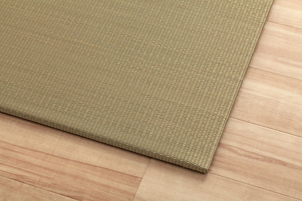 フローリングに置くだけ。なつかしい畳の香りと肌ざわりを手軽に楽しめます。い草には空気の自然浄化作用、湿度の調節作用などがあります。また汚れにくく、使用するうちに黄金色に変化し味が出ます。中材は木製ボードタイプ+ポリエチレンで程よいクッション性と重量感があります。