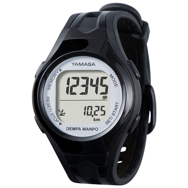 電波時計内蔵腕時計型 ウォッチ万歩計 DEMPA MANPO ブラックxシルバー