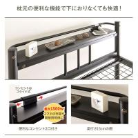 宮棚は時計や本、小物を置くのにとても便利。またコンセントは2口あり、