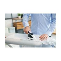 ●アイロンとして使う時はアイロン台の上でしっかりプレス。細く握りやすいハンドルと安定性に優れたヘッドで、スチーム時もアイロン時も、快適に操作できます。