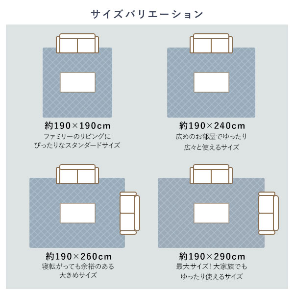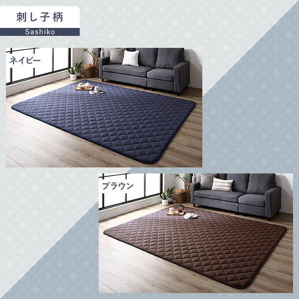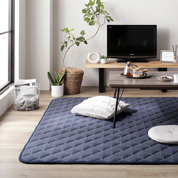 こたつ敷布団 キルト ラグ マット 約190×240cm 長方形 デニム生地 ネイビー 洗える 綿100% 床暖房可 防滑