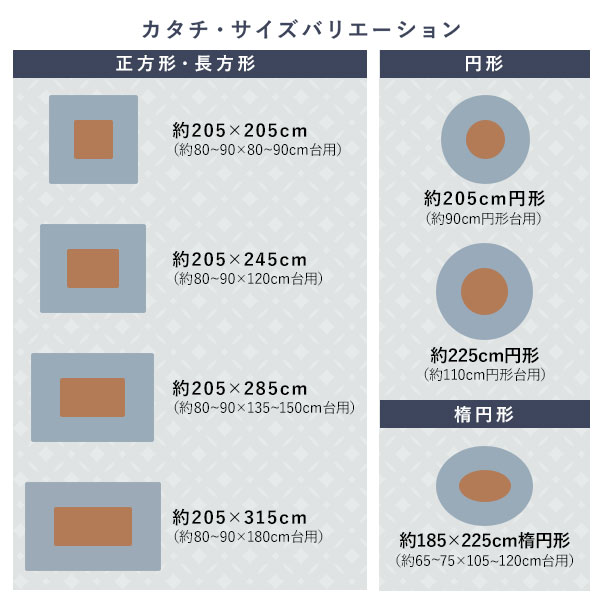 ・205×285cm(80〜90cm×135〜150cm幅のこたつ台に対応)