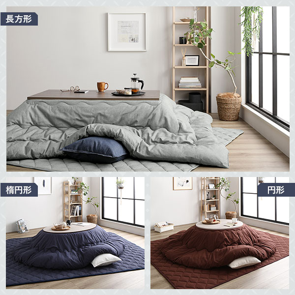 無地調のこたつ布団なので、和風・洋風どちらにもあうデザイン。
